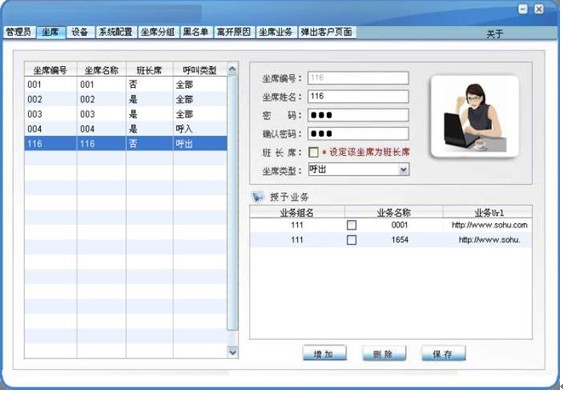  新增座席,输入座席的基本资料如座席编号和密码等等确定即可;